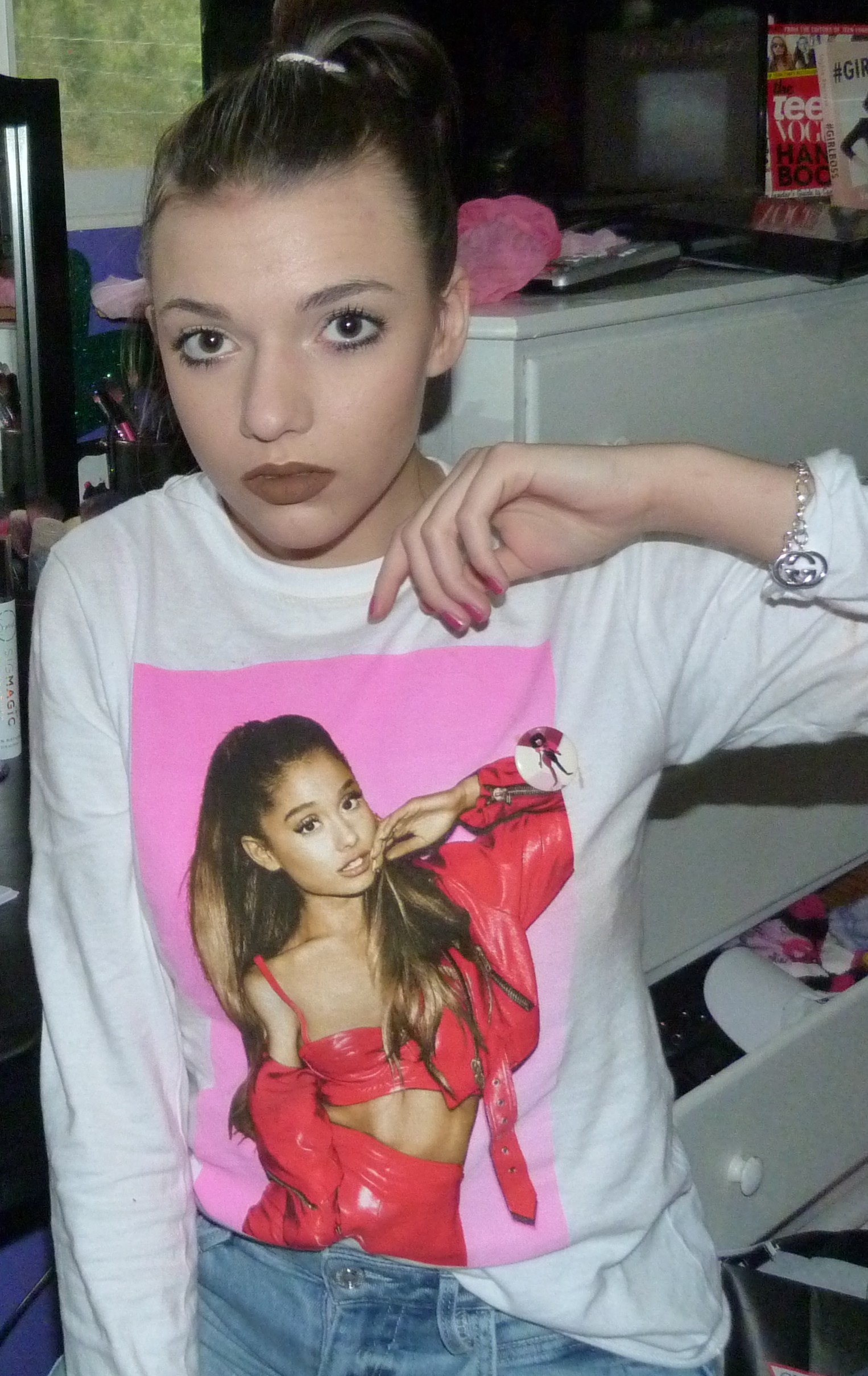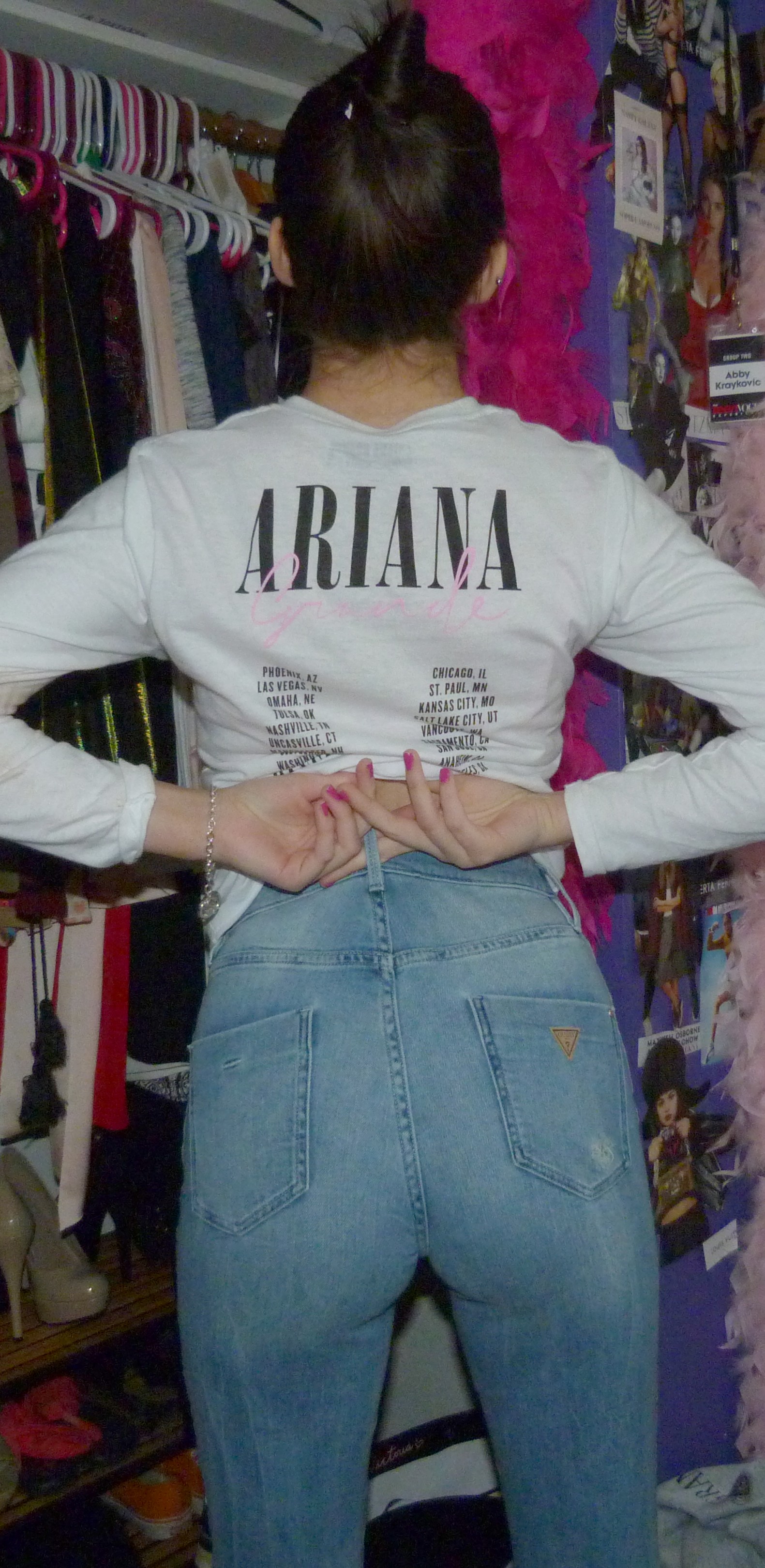 Hey guys, here’s another concert tee I got in 2017 and did a photoshoot for. I ended up seeing Ariana Grande really close up front live for her Dangerous Woman 2017 tour and it was awesome! I ended up getting a poster, a short sleeved t-shirt, and this white long sleeved t-shirt. I also got a bonus of confetti shot from the stage, and it’s a small dollar bill with Ariana’s face on it. It’s so cute! I ended up doing a blog post about this experience with the outfits for that merch on my main blog, Shop For Days, back in March of 2017. You can check out that blog post here, it’s called Dangerous Woman Tour.
