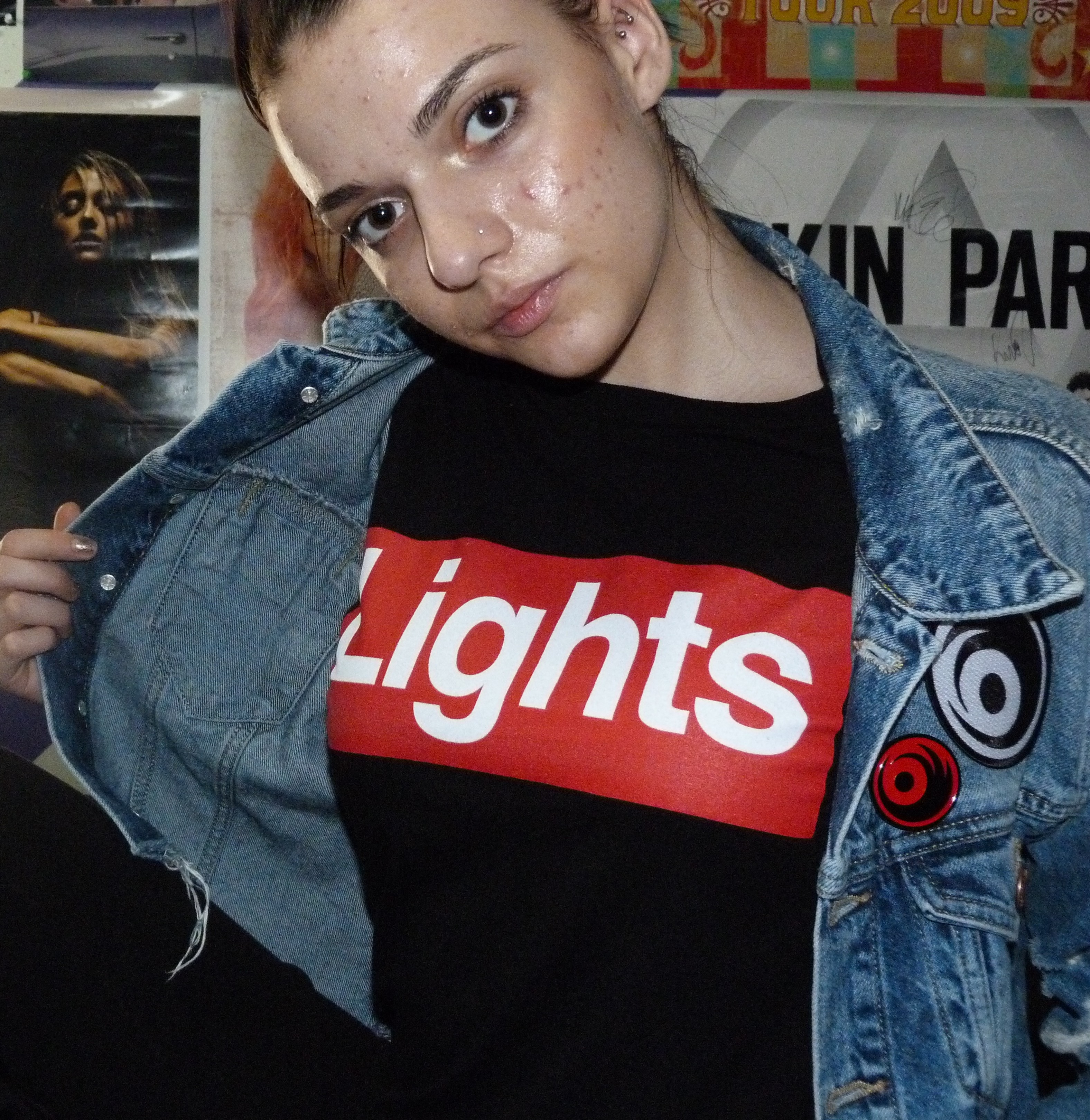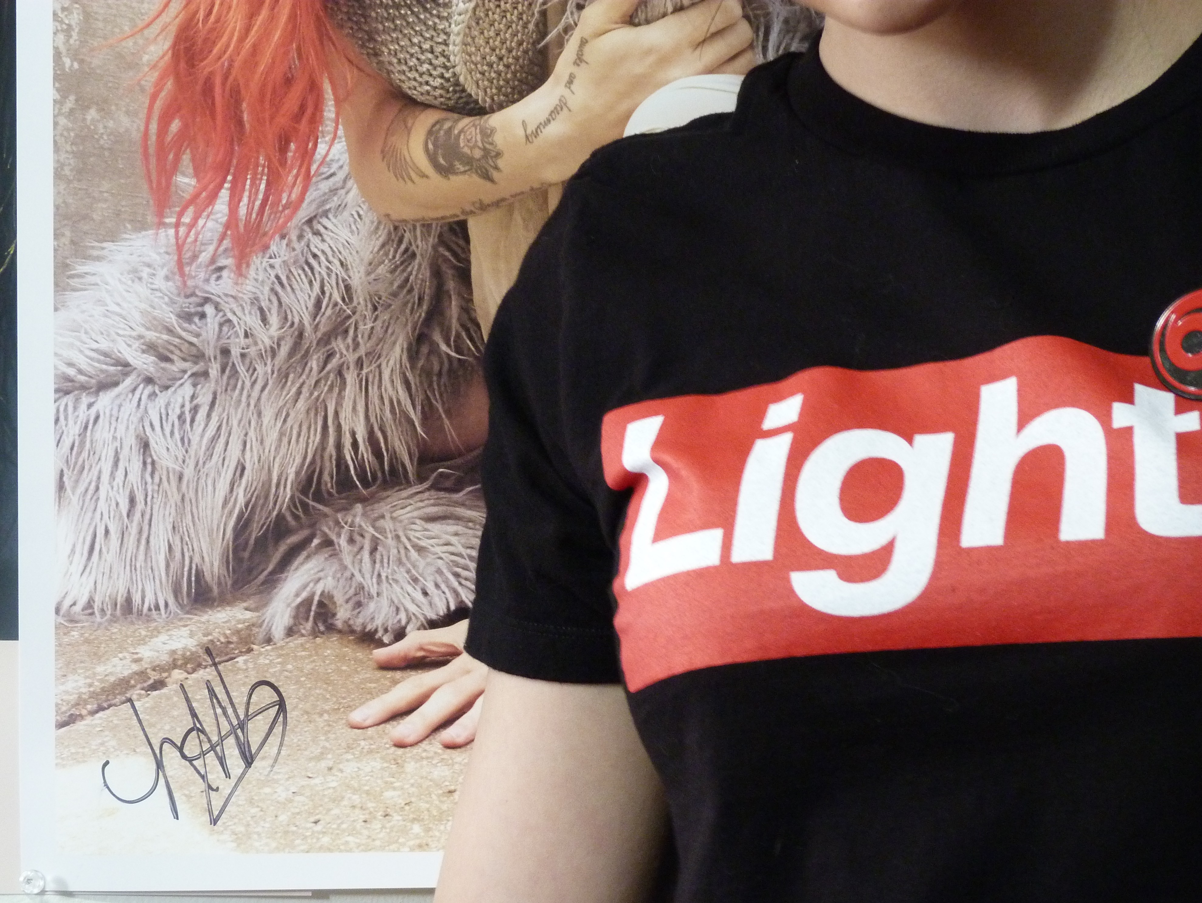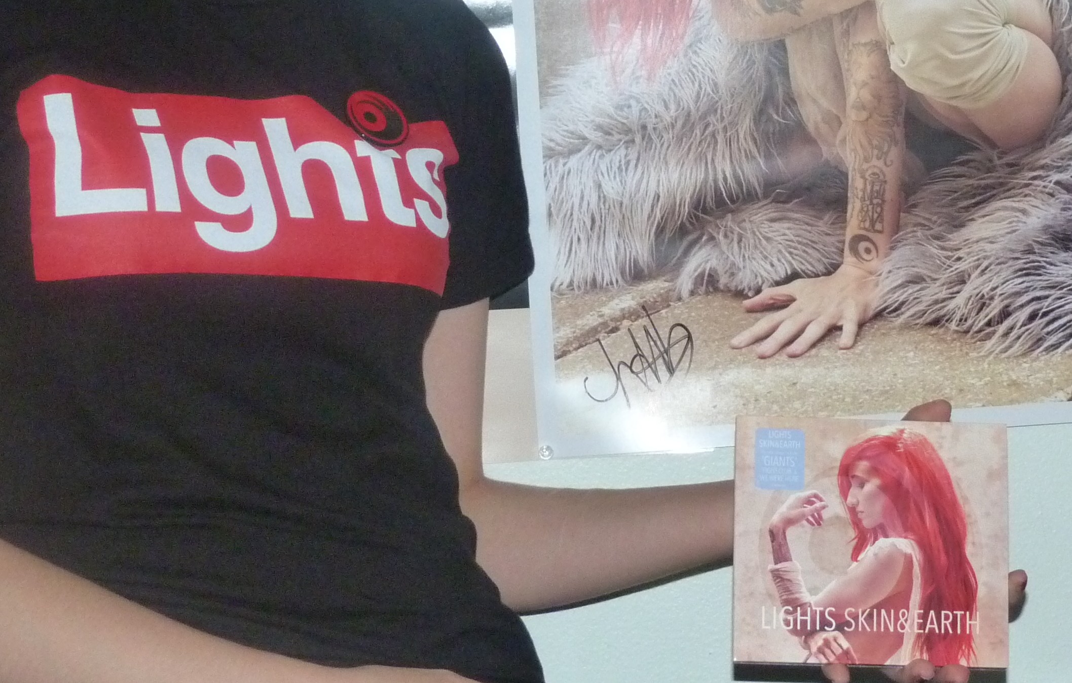 - LIGHTS RED PRE-ORDER SHIRT, SIGNED 18X24 INCH POSTER, CD, IRON ON LOGO PATCH, LOGO ENAMEL PIN RED, THAT’S IT! BUT I LOST THE DENIM JACKET.