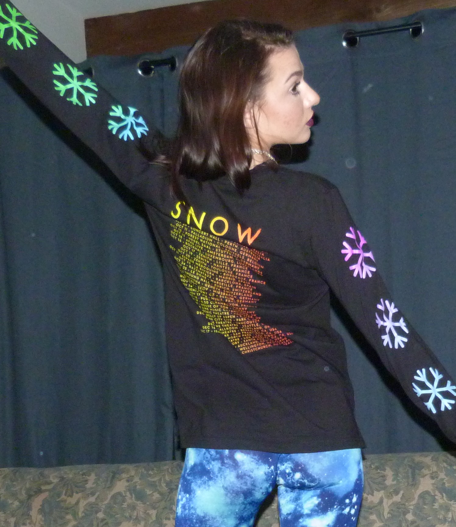 Thanks for checking out my collective blog! Today I’m going to be posting about this black long-sleeved t-shirt I got from Angus & Julia Stone’s 2017 tour in Seattle. The shirt has blue, green & purple snowflakes going down the arms with the duos name on the front, and then it says ‘Snow’ on the back with the tour dates & cities. I ended up doing a photoshoot of this shirt at my exes house back then for a blog post on my main blog, Shop For Days. You can check out the blog post here, it’s called This Is Where We Belong. The photoshoot was cute, I wore these bright blue cosmic leggings with my gold boots from Nasty Gal. Click those links for the full photoshoot & original post from 2017, but here’s a collage taken from all the best pictures of the photoshoot (of the shirt)!