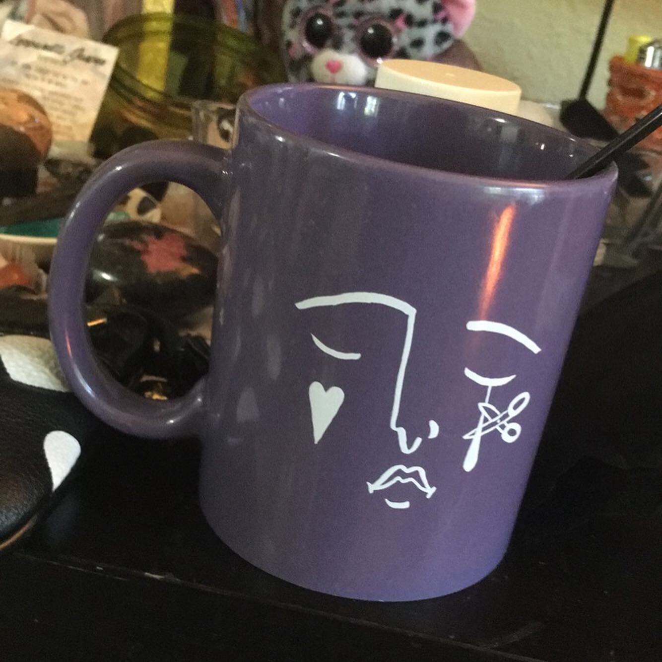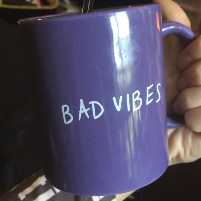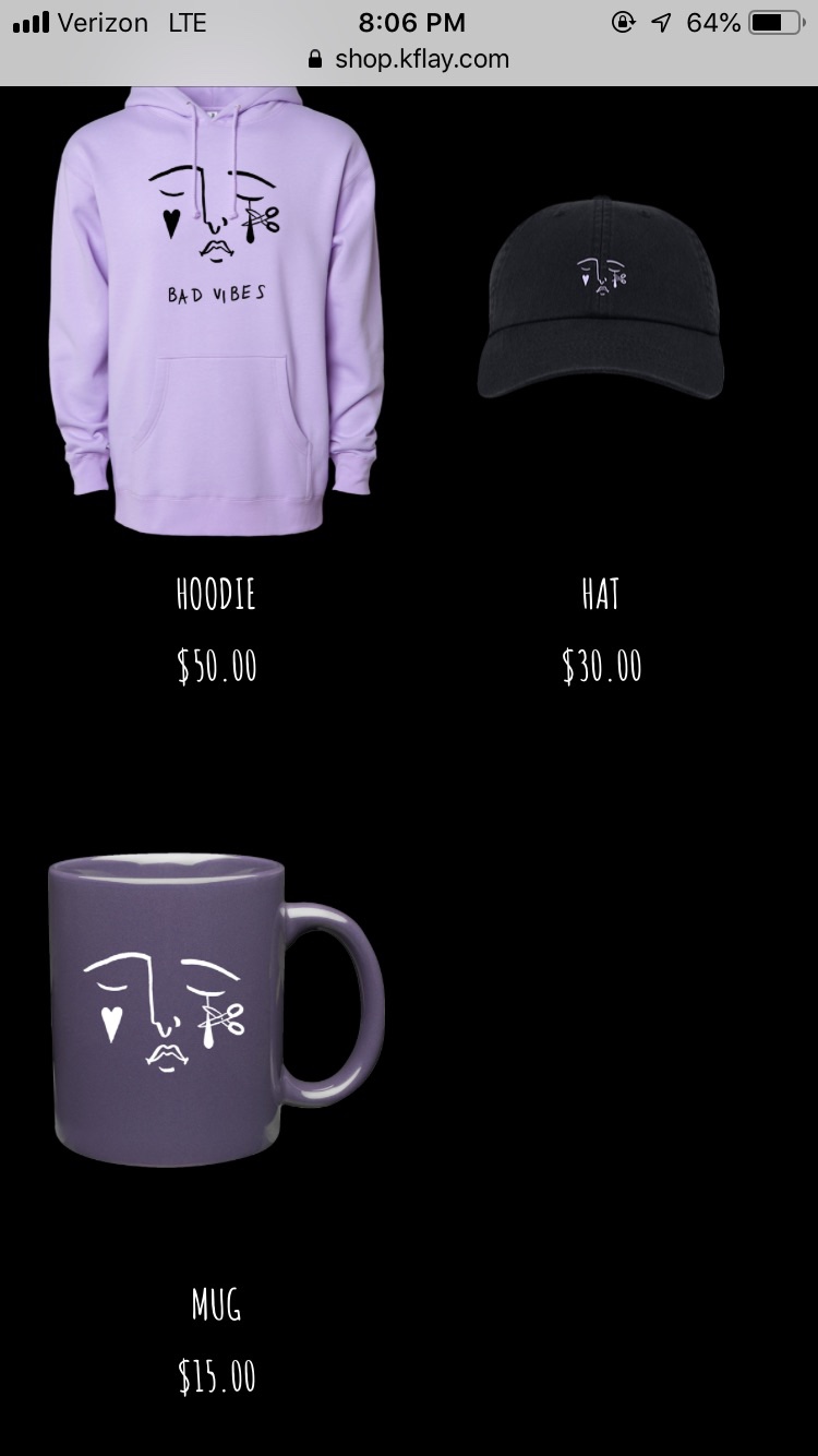 In 2019, K.Flay released her Bad Vibes single, which was the lead for her Solutions album. I was excited when that song came out, it was pretty good! So in March of 2019, she dropped some Bad Vibes merchandise onto her online store, and one of the items included this purple mug with a sad-type-ish face on it, with a heart under one eye and a teardrop + scissors under the other eye. It was only for $15 on her online site, but with shipping & everything (since I just only got the mug) I got it for a total of $27.51 which isn’t bad! I ordered it on April 24th, 2019, too. I think it’s a really good mug for coffee, I might’ve used to also use it for tea too but now just coffee! I used to use it a lot in 2019, especially, too. It’s a pretty awesome mug, though & I’m glad I got this one.