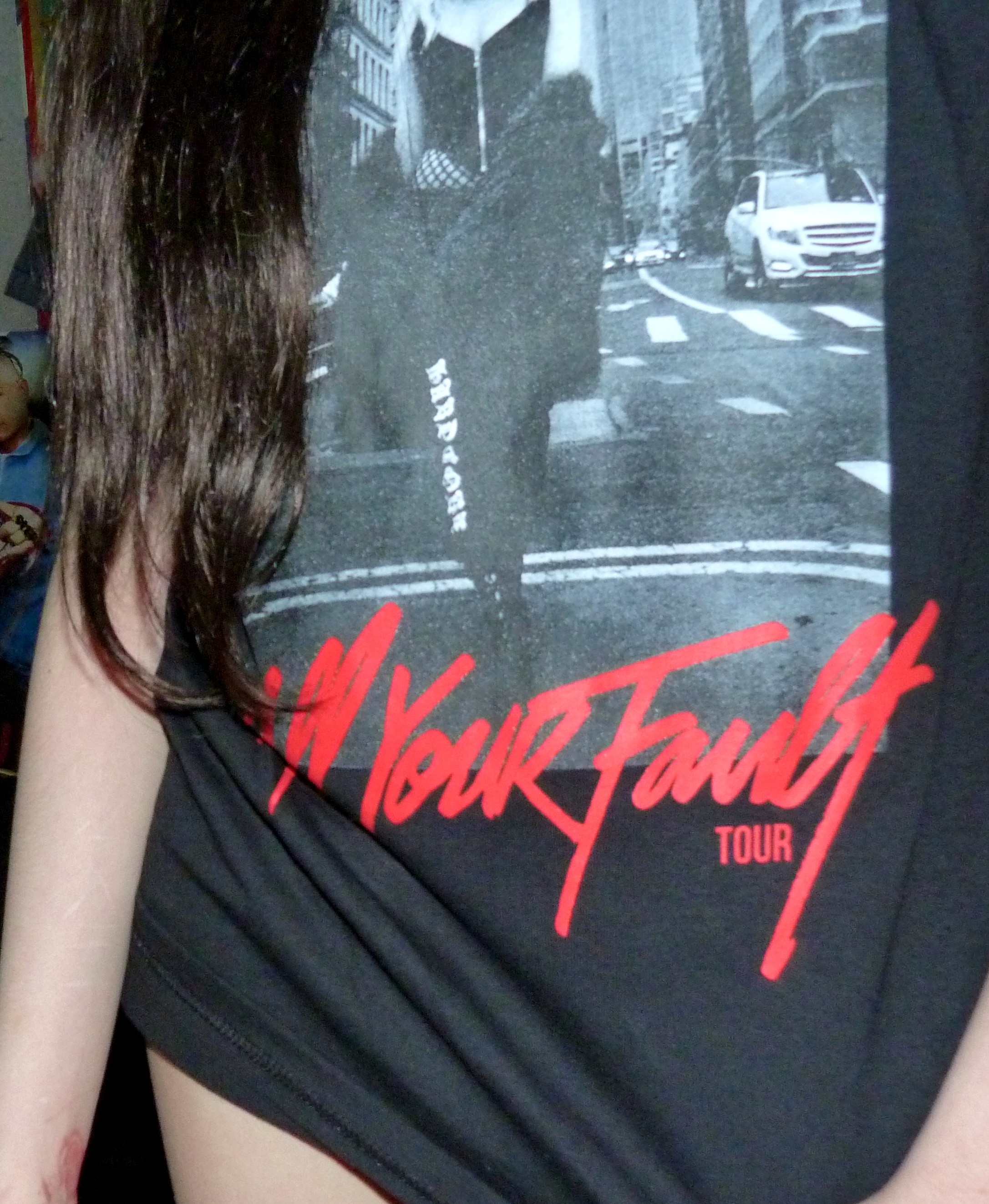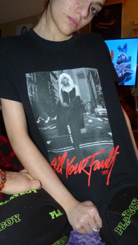 Hey everyone! Today is a fun scrap post that I’ve put together for this one Bebe Rexha shirt. There’s two specific posts with these mentioned in it on my other blog, like Concertgoer for one. I got this with the first Bebe Rexha concert I went to, actually. It was super cool in 2017 particularly. One of these shoots I did of this shirt was sloppy but cool actually, I’m dating this post the date of the photoshoot.