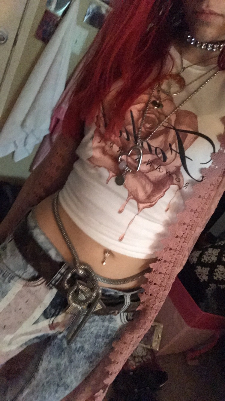 Most of that jewelry my stepmom actually made for me but this is one of my all-time favorite merch shirts that I have so one day I’ll do a legitimate photoshoot for it with my camera. So yep! Also I have the ever-rotating poster that I’ll eventually post next to it. 🙂