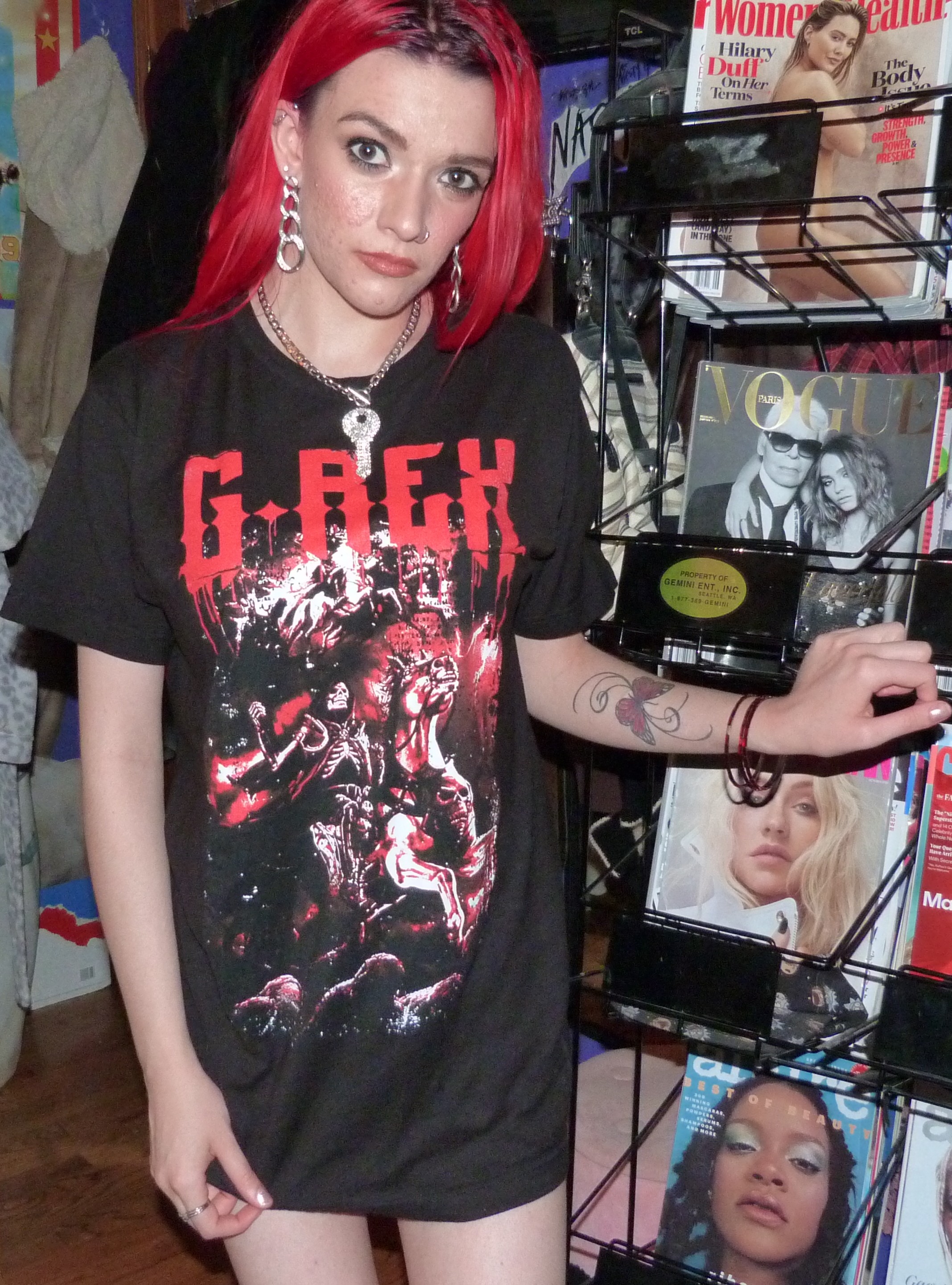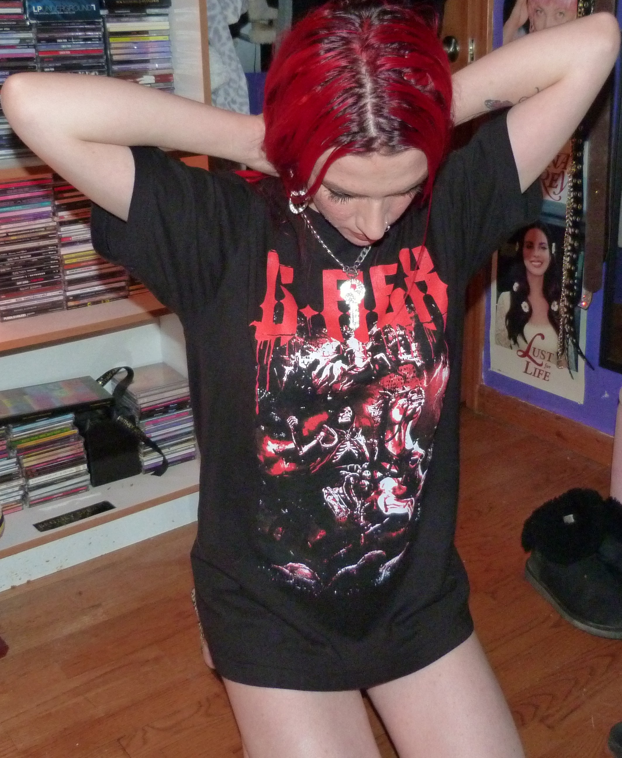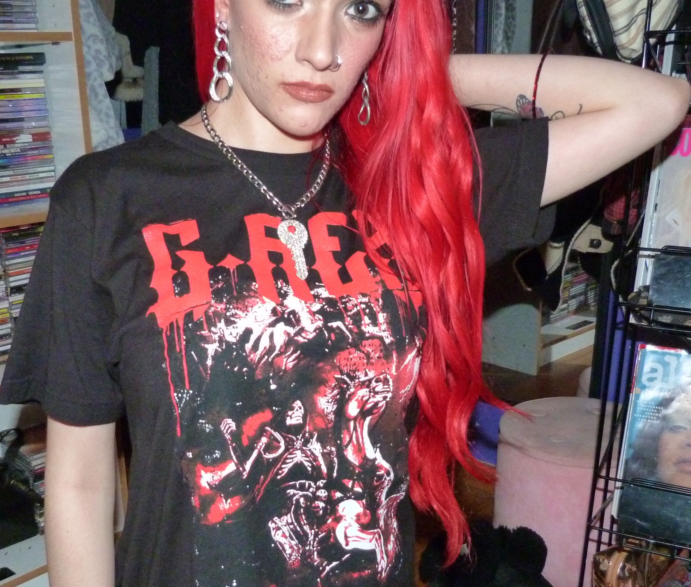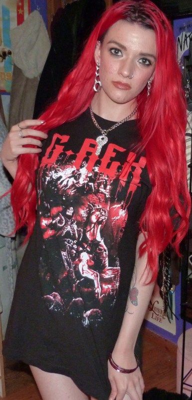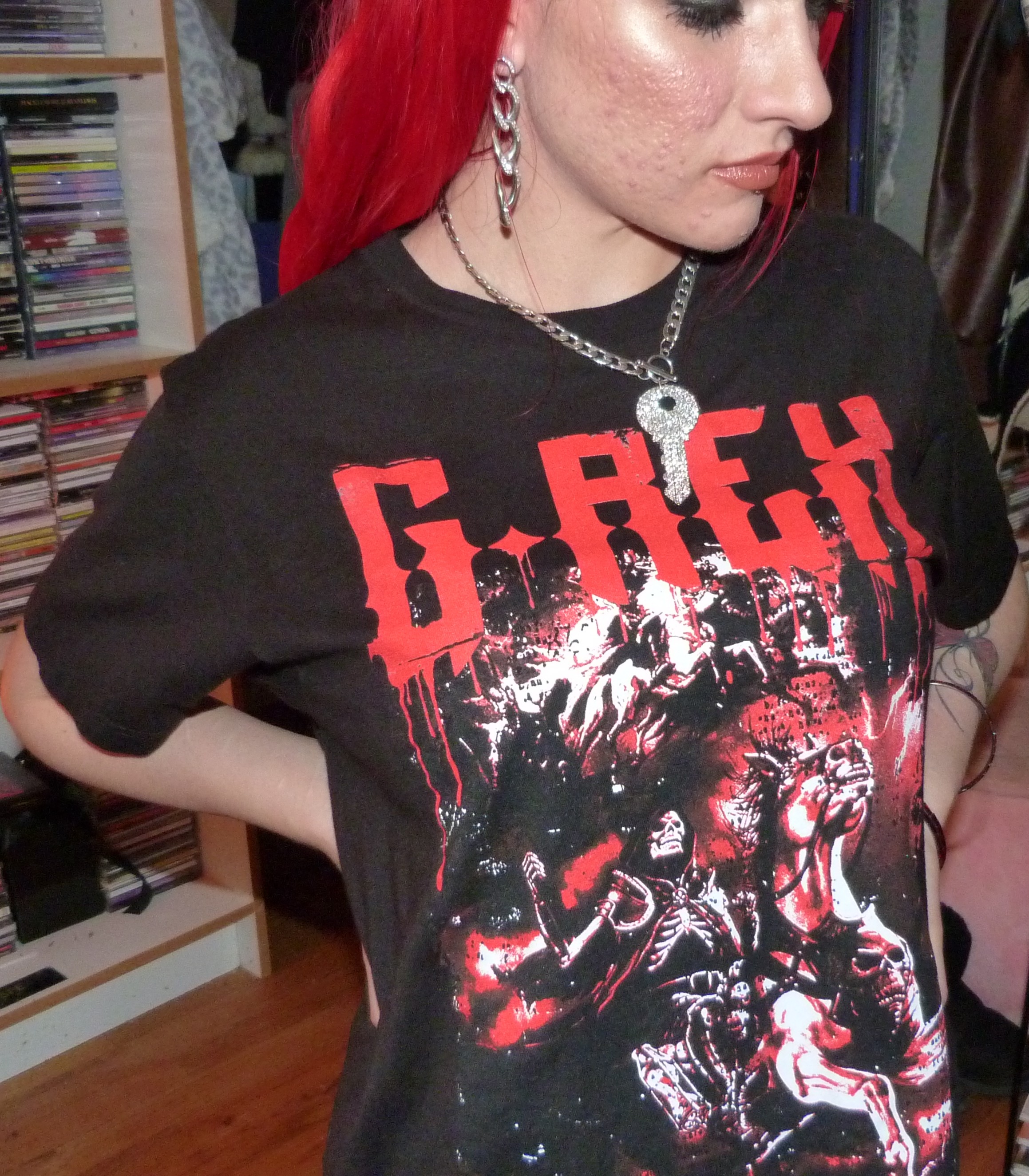 Hi guys, thanks for checking out this blog post! I did a photoshoot this week for this red & black G-Rex graphic tee I got from his show in Seattle on November 20th, 2021. He opened for Peekaboo and they are both electronic artists. The two of them together have two duet songs, one being ‘Babatunde’ and the other being ‘Deviant’ which was released recently. They didn’t have any merchandise for Peekaboo there, but they did for G-Rex so I got this t-shirt in a size M which was their smallest size. The venue was the Showbox SoDo in downtown Seattle. I really love G-Rex’s music these days with all my heart too, my favorite song being Pull Up. That’s what I named this photoshoot and posted it on my main blog, Shop For Days. Thanks for reading, here’s some pics from the shoot!