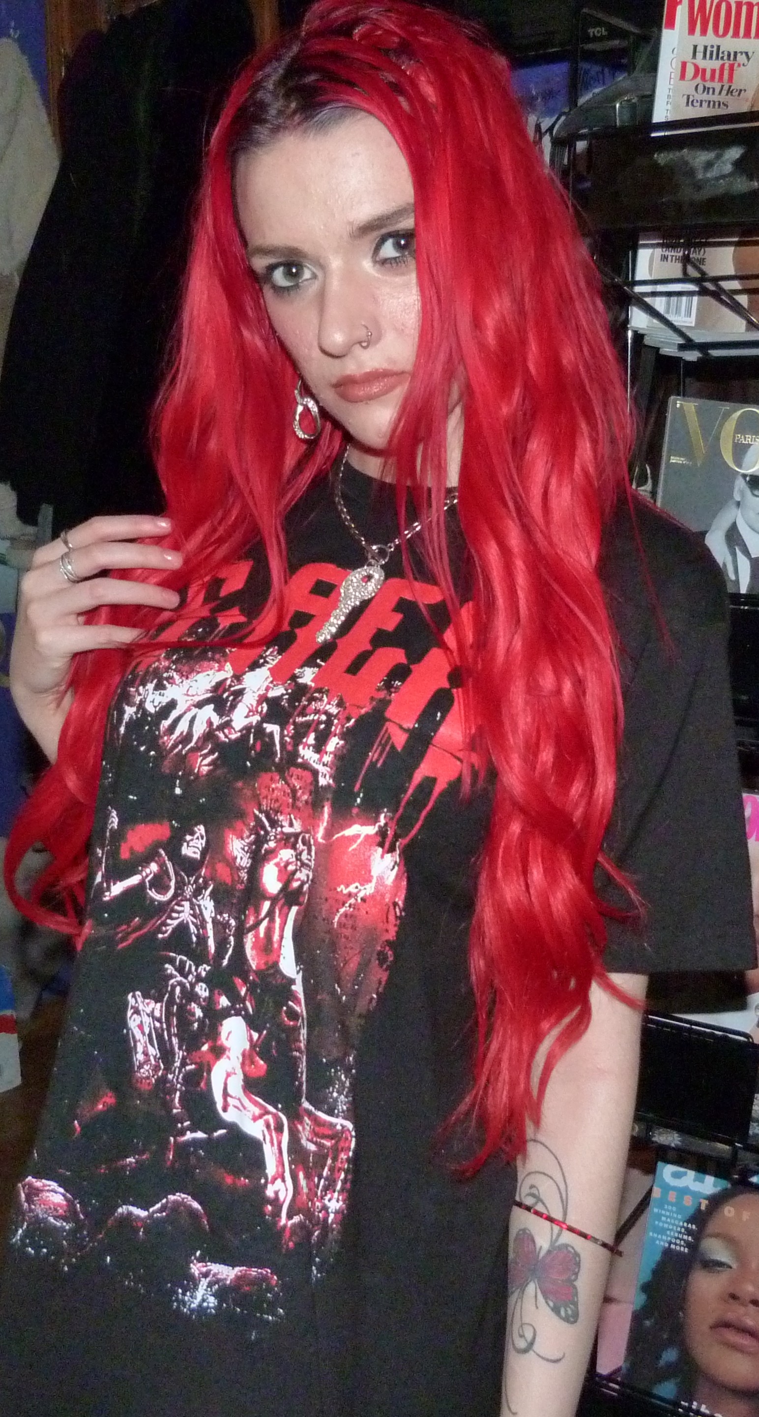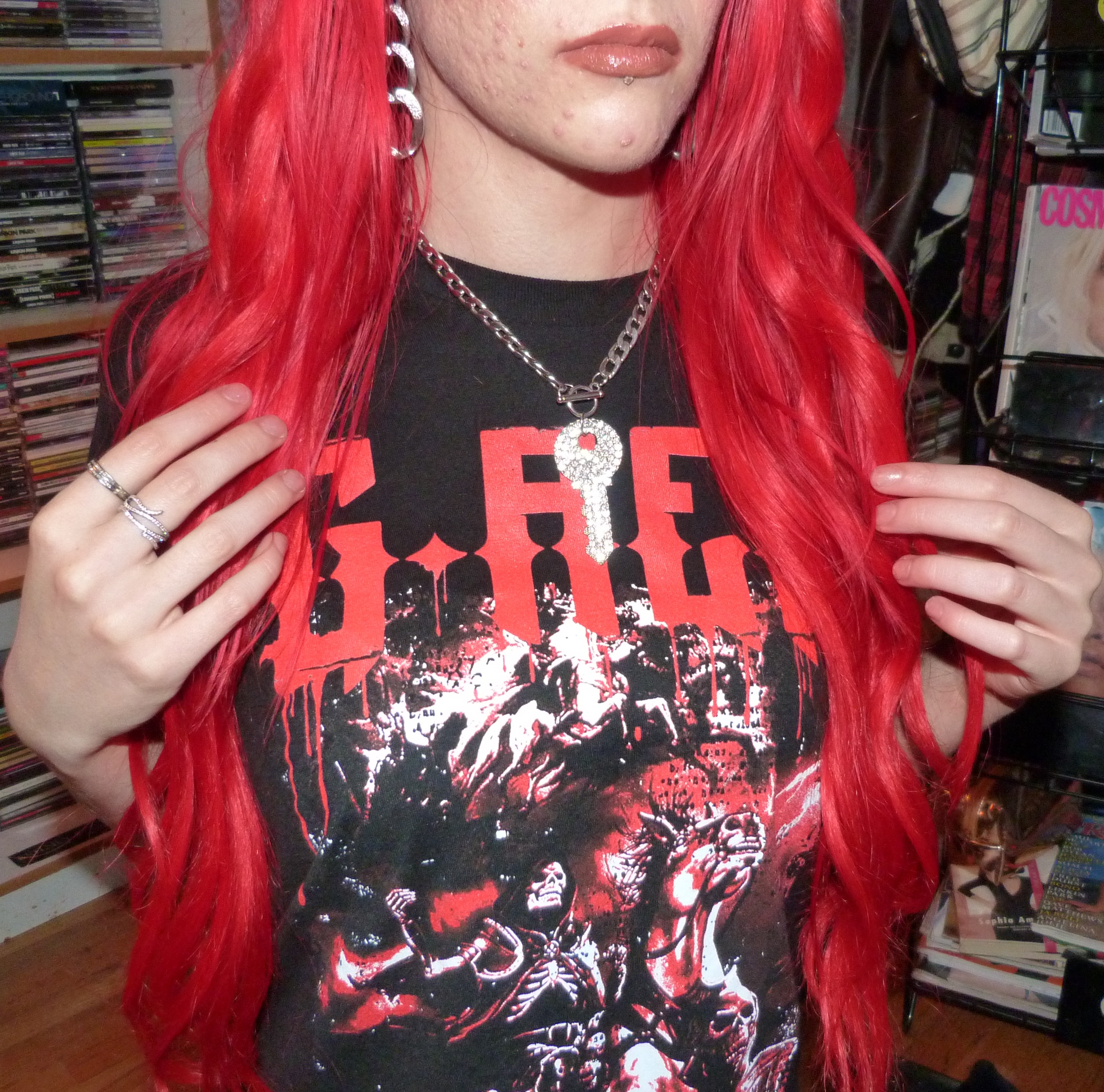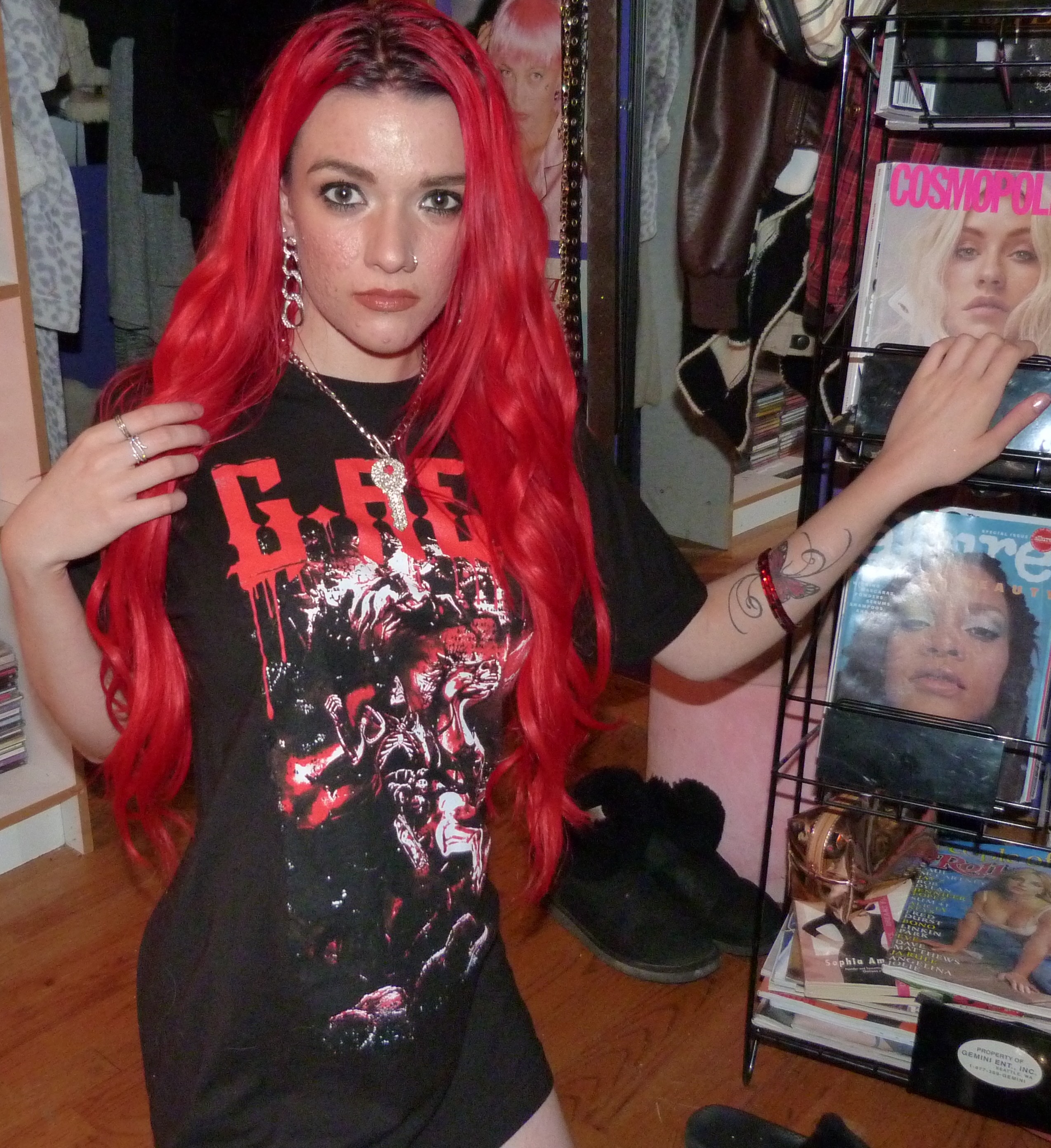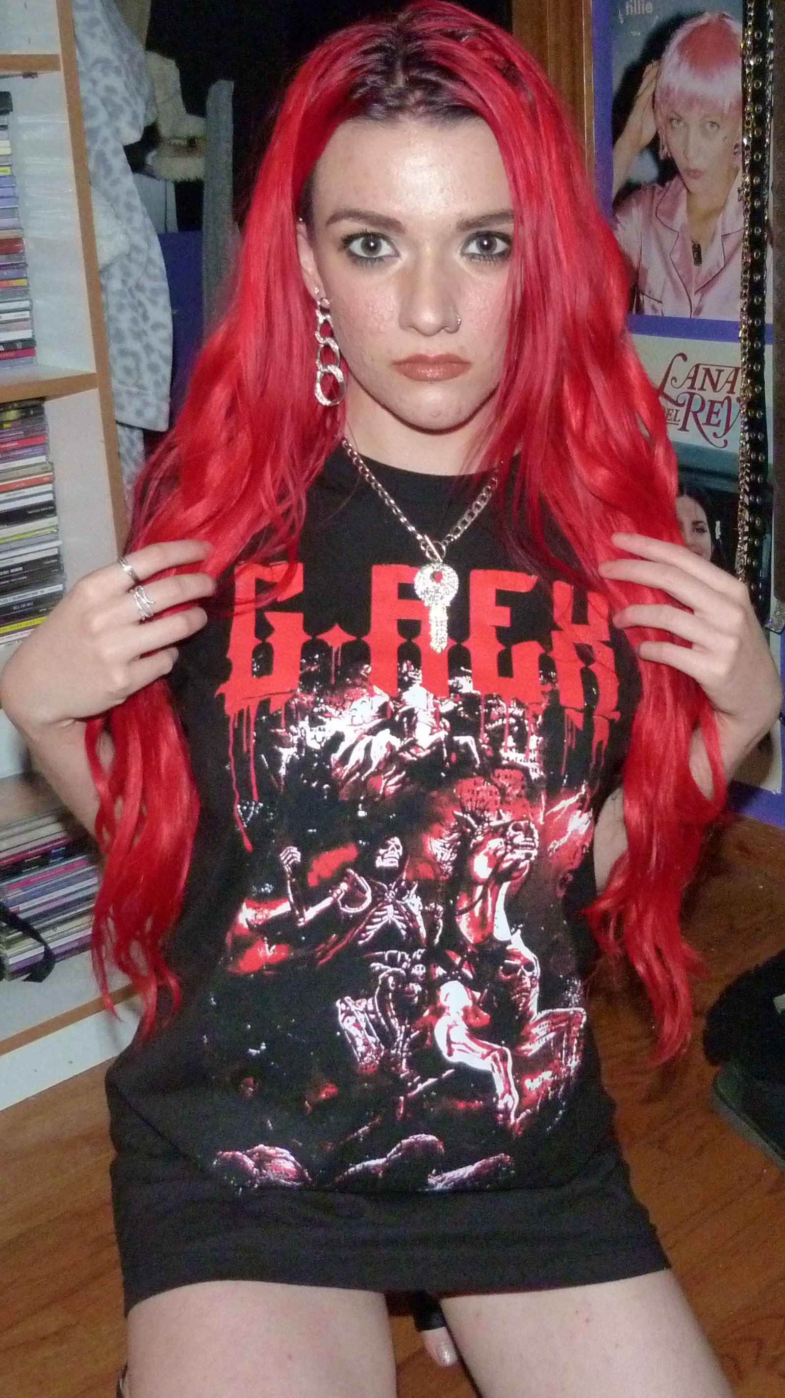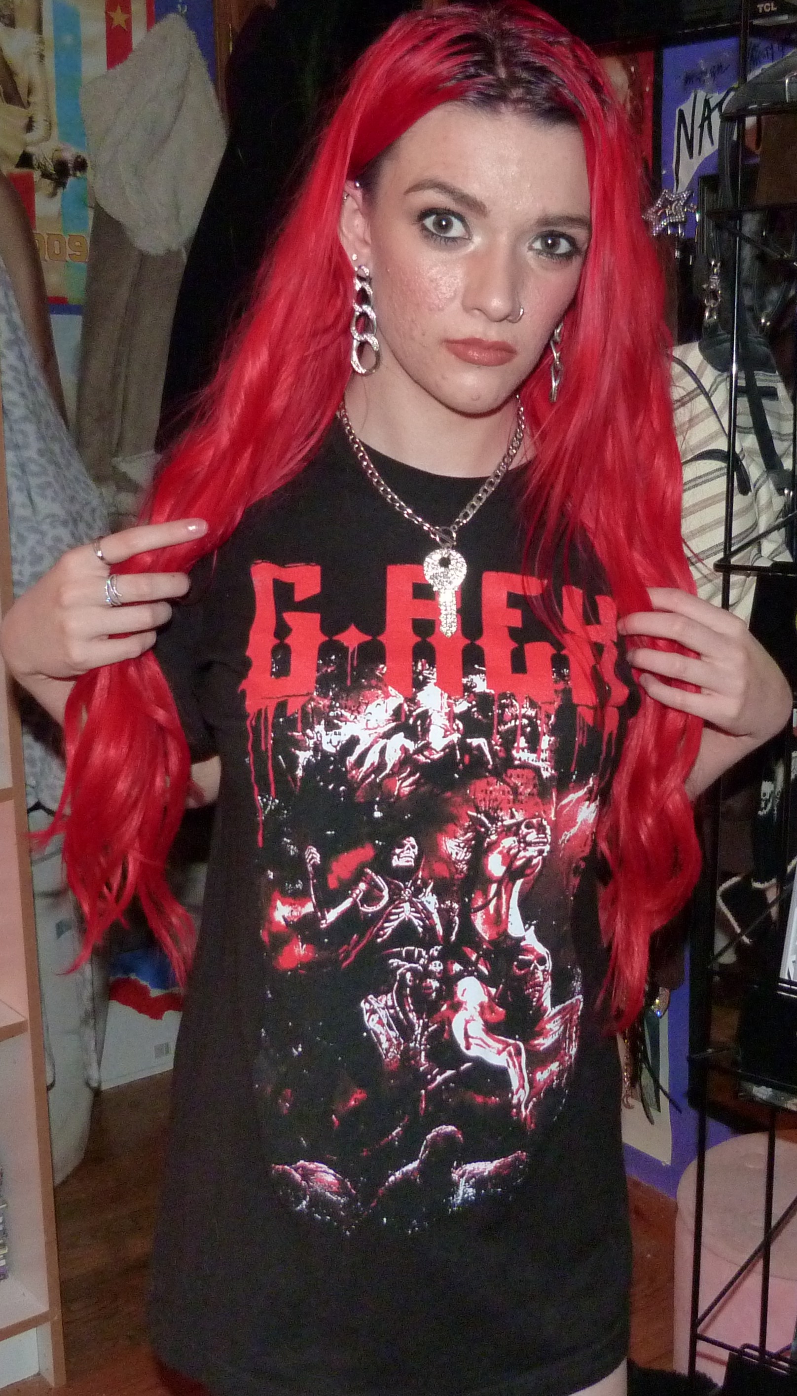 Hi guys, thanks for checking out this blog post! I did a photoshoot this week for this red & black G-Rex graphic tee I got from his show in Seattle on November 20th, 2021. He opened for Peekaboo and they are both electronic artists. The two of them together have two duet songs, one being ‘Babatunde’ and the other being ‘Deviant’ which was released recently. They didn’t have any merchandise for Peekaboo there, but they did for G-Rex so I got this t-shirt in a size M which was their smallest size. The venue was the Showbox SoDo in downtown Seattle. I really love G-Rex’s music these days with all my heart too, my favorite song being Pull Up. That’s what I named this photoshoot and posted it on my main blog, Shop For Days. Thanks for reading, here’s some pics from the shoot!