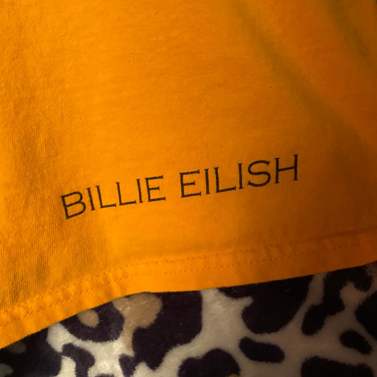 PS – I forgot to get pictures of this in this photoshoot, but in the bottom right corner on the back of the t-shirt it says her name, Billie Eilish on it. Here’s a picture!
