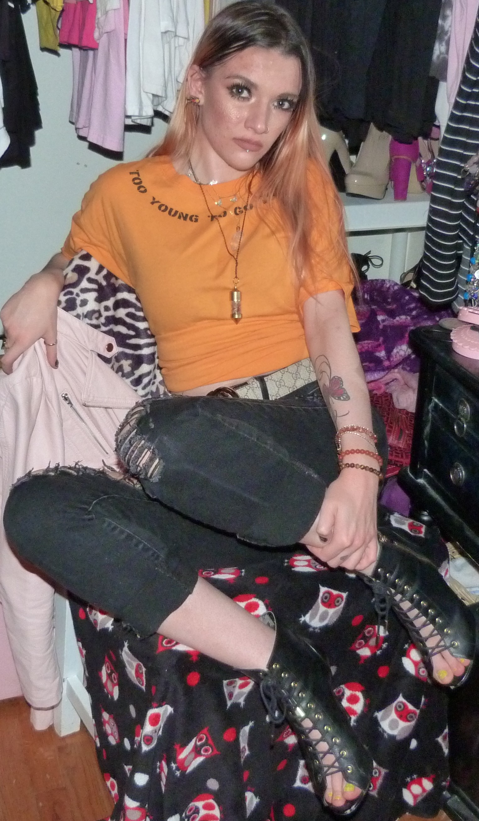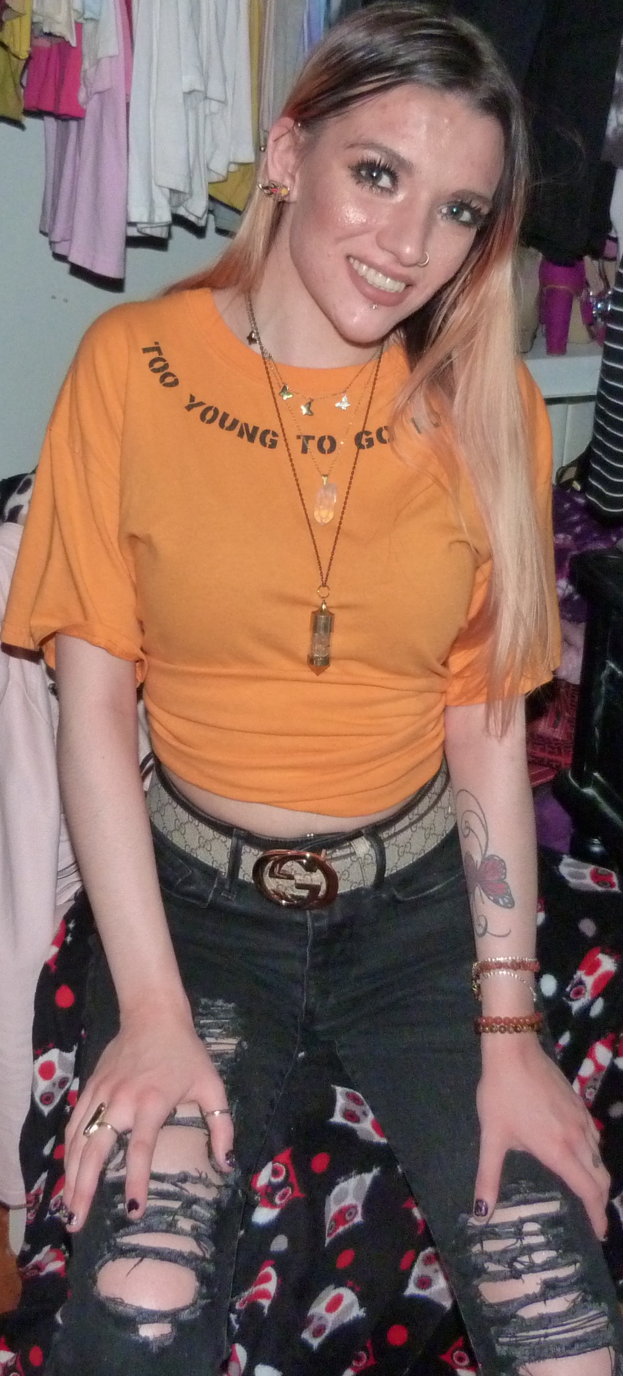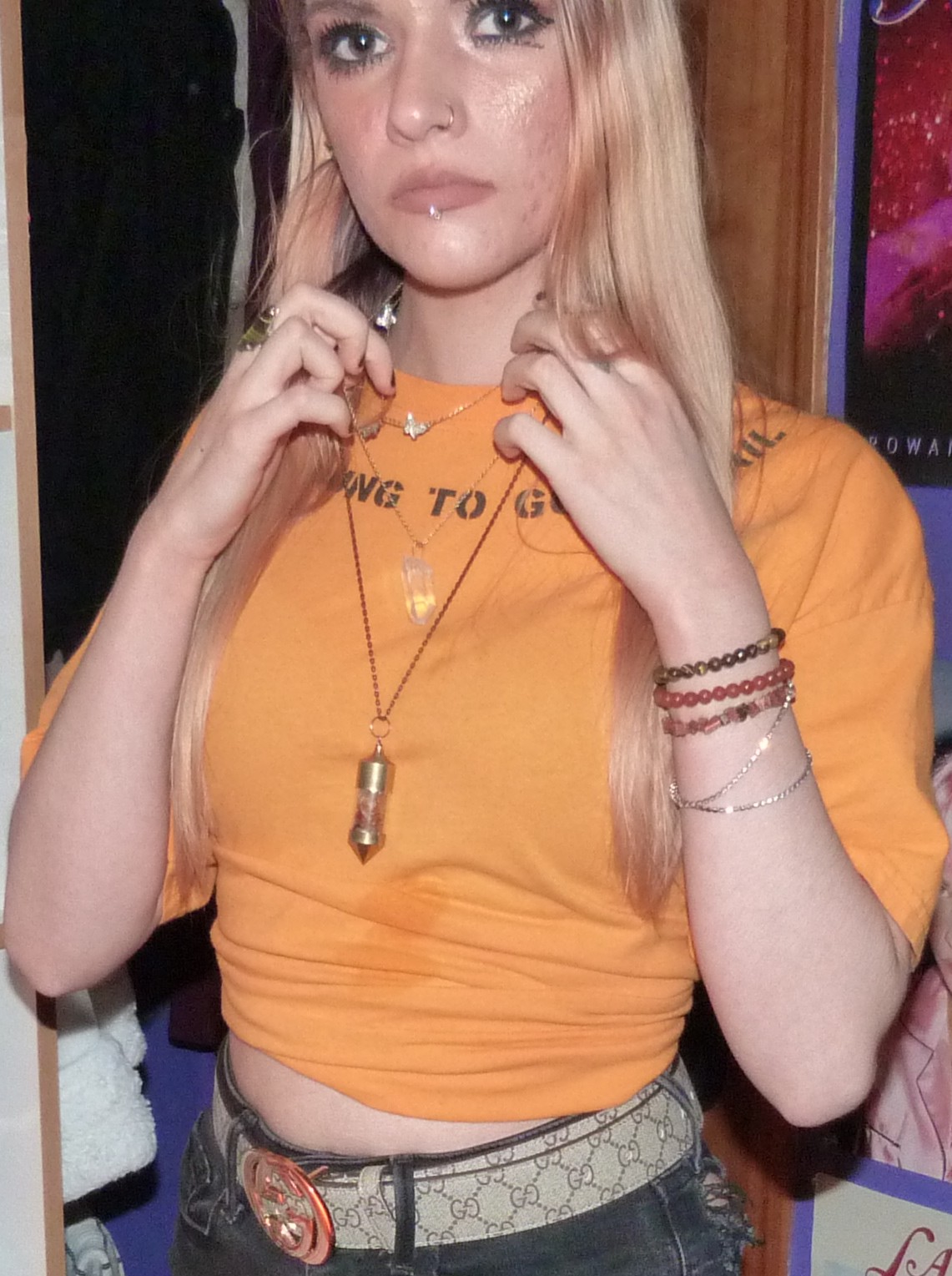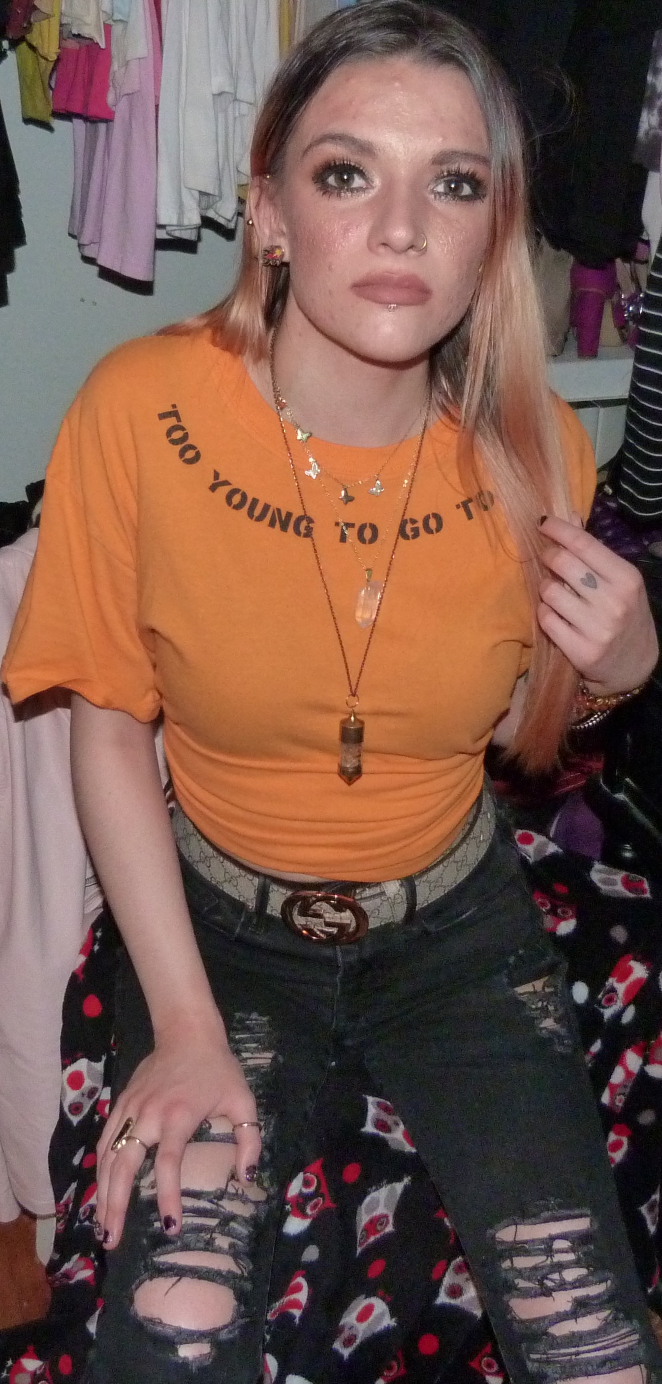 I recently did a cute photoshoot for this shirt that I got in 2018. This was the first Billie Eilish shirt I ever bought and I love it. It’s bright orange with the lyrics ‘Too Young To Go To Jail’ on the shirt from her song Bellyache. The photoshoot for it turned out pretty good! I wore it with gold & a Gucci belt that I got for Christmas. You can check the main blog post out on my main style/fashion blog, Shop For Days – it’s a post called GOLDWING named after a 2021 Billie song.