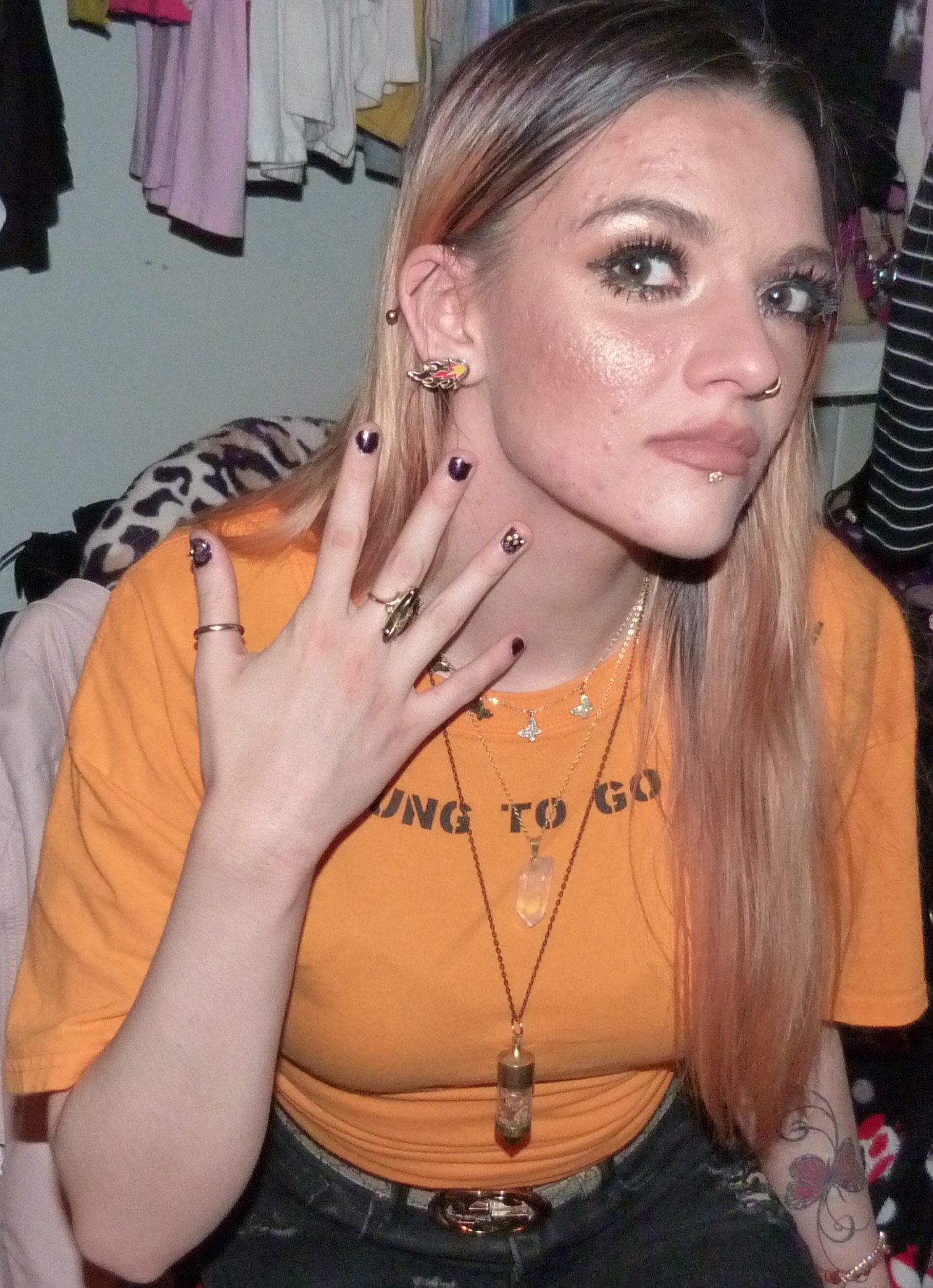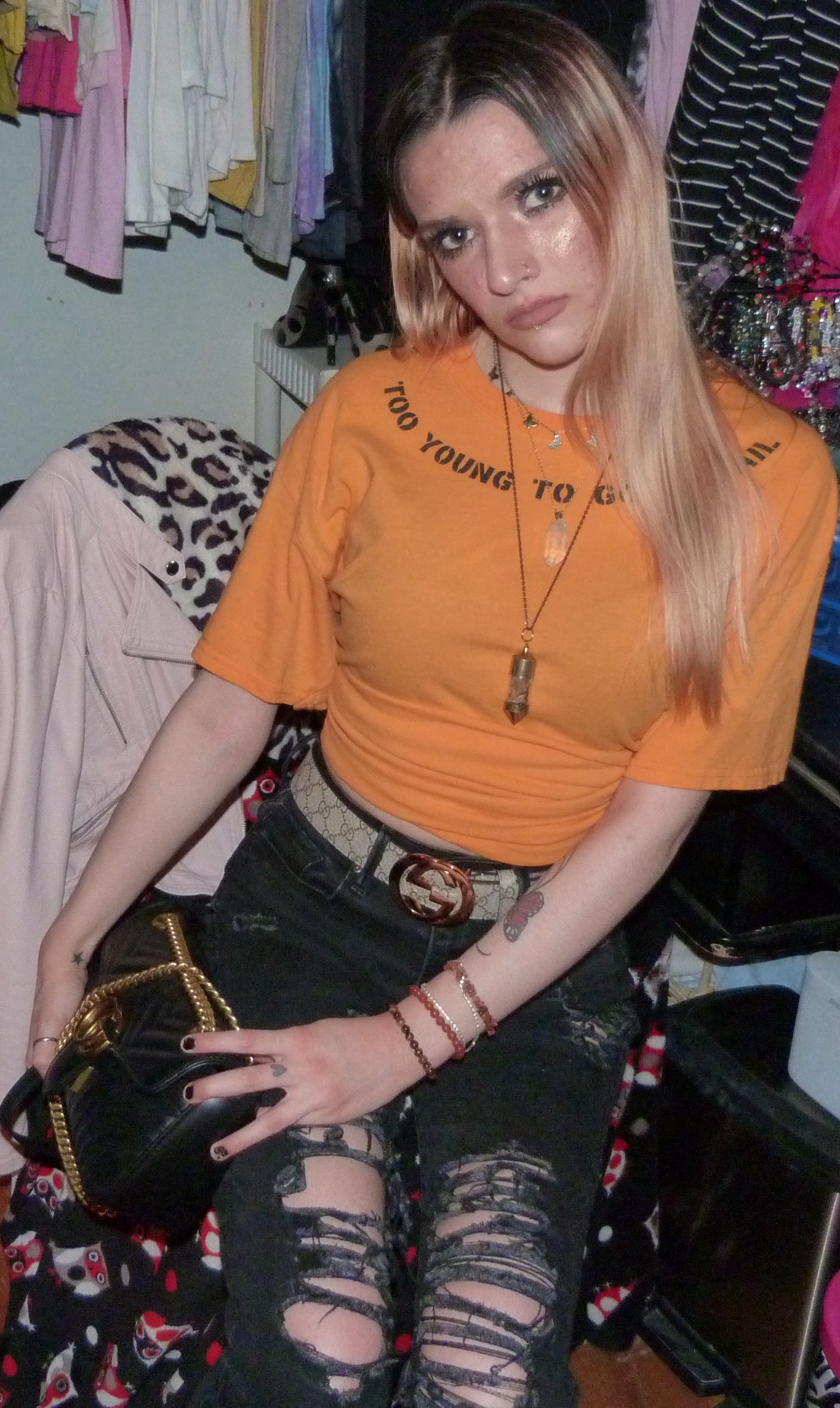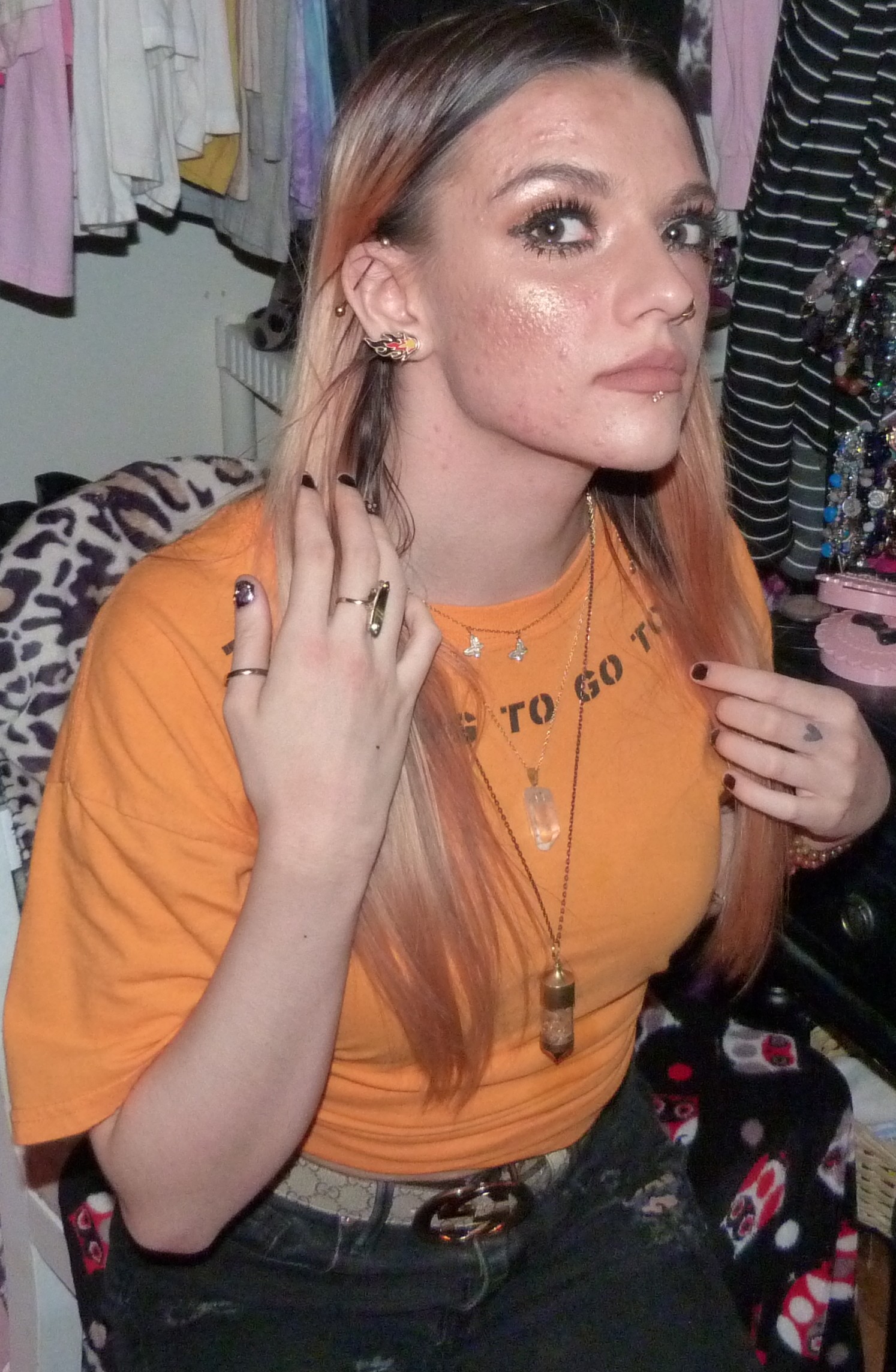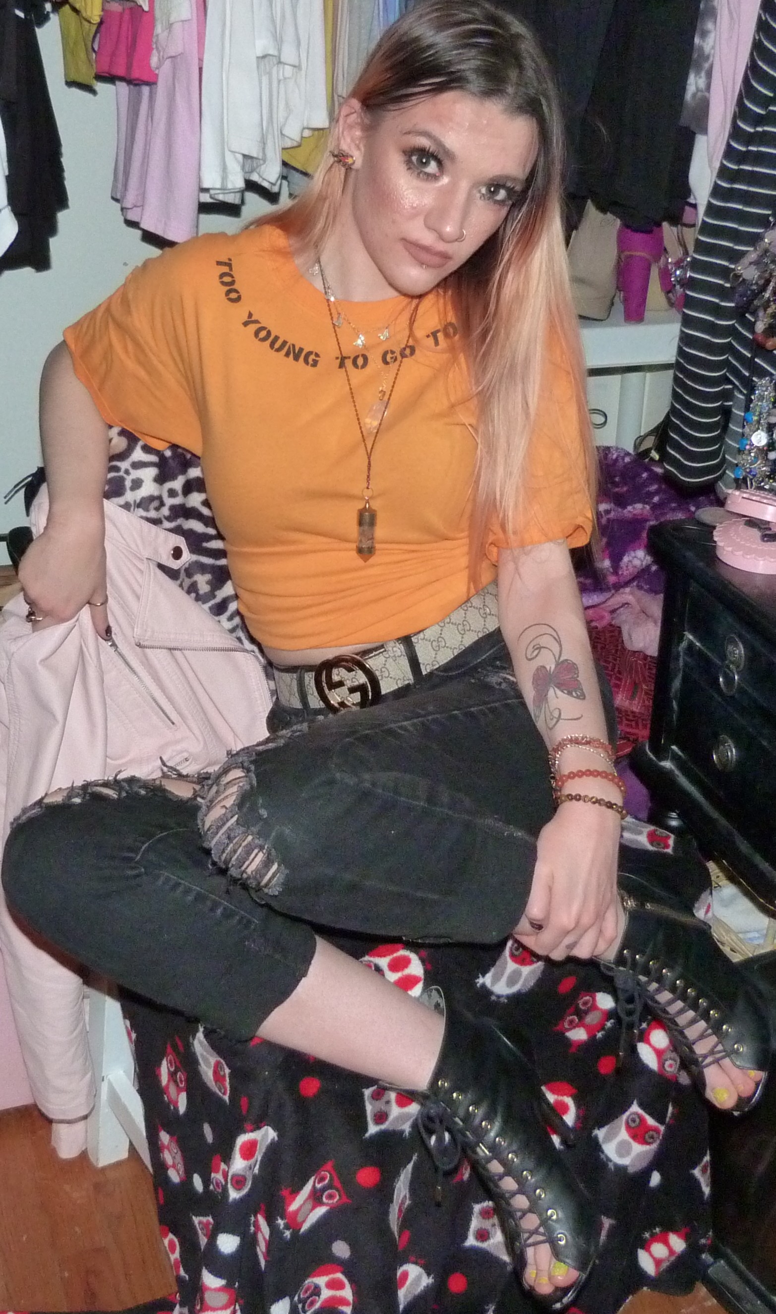 I recently did a cute photoshoot for this shirt that I got in 2018. This was the first Billie Eilish shirt I ever bought and I love it. It’s bright orange with the lyrics ‘Too Young To Go To Jail’ on the shirt from her song Bellyache. The photoshoot for it turned out pretty good! I wore it with gold & a Gucci belt that I got for Christmas. You can check the main blog post out on my main style/fashion blog, Shop For Days – it’s a post called GOLDWING named after a 2021 Billie song.