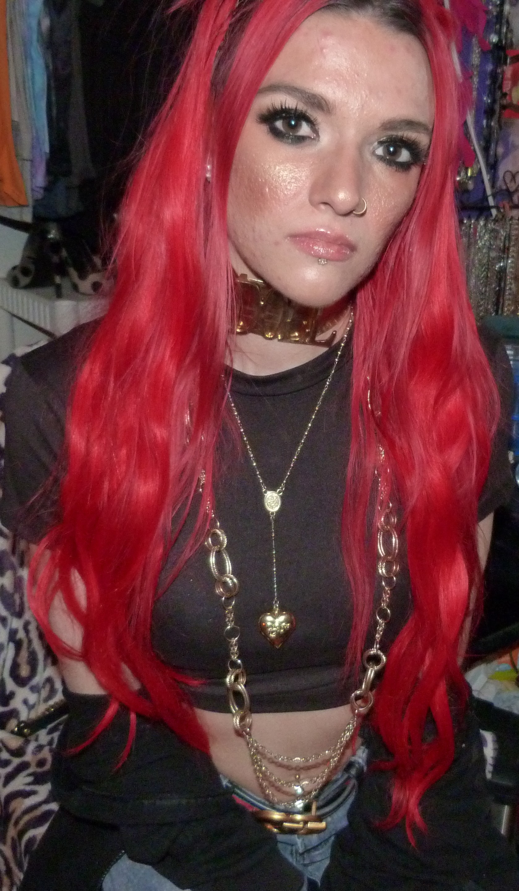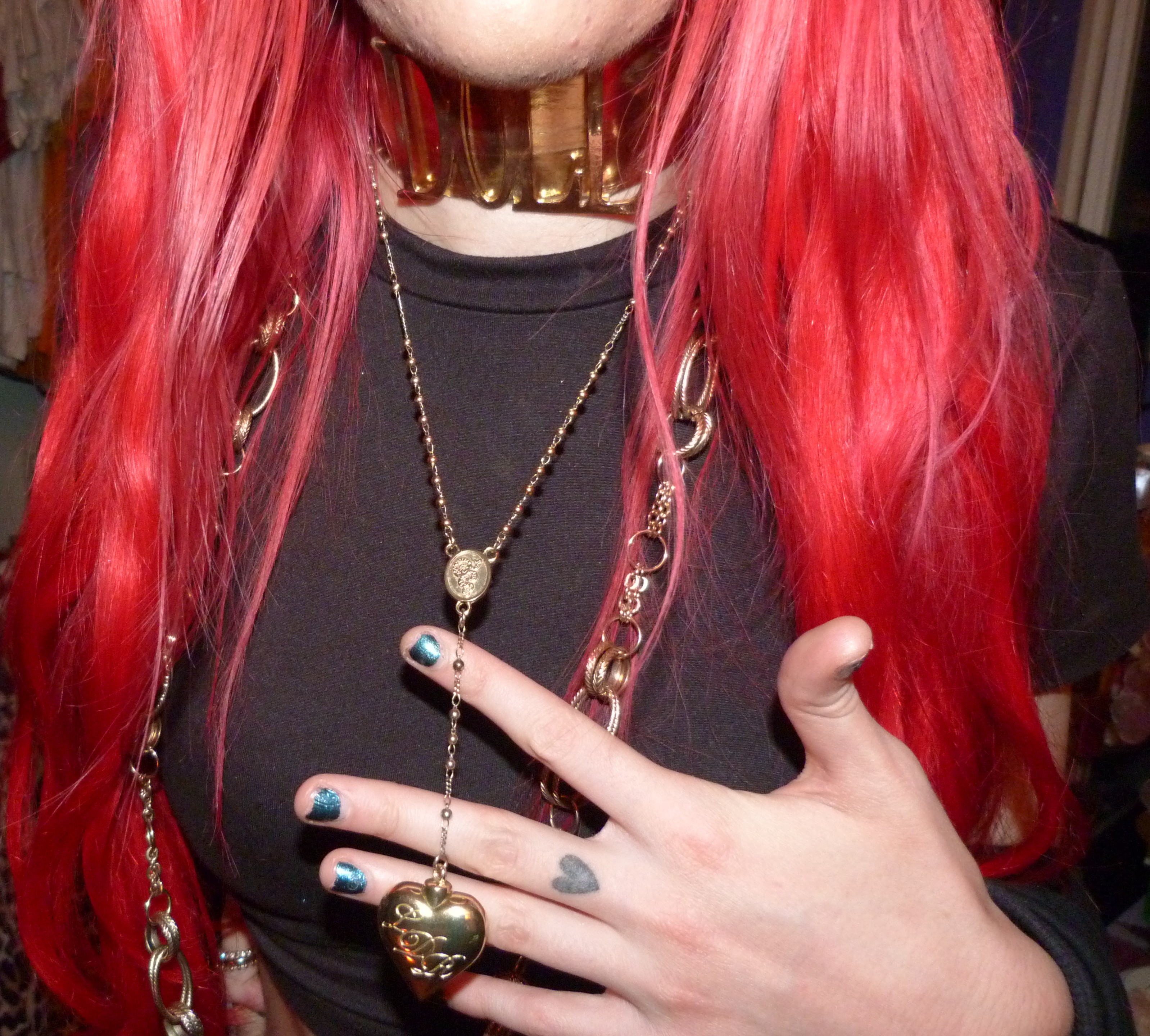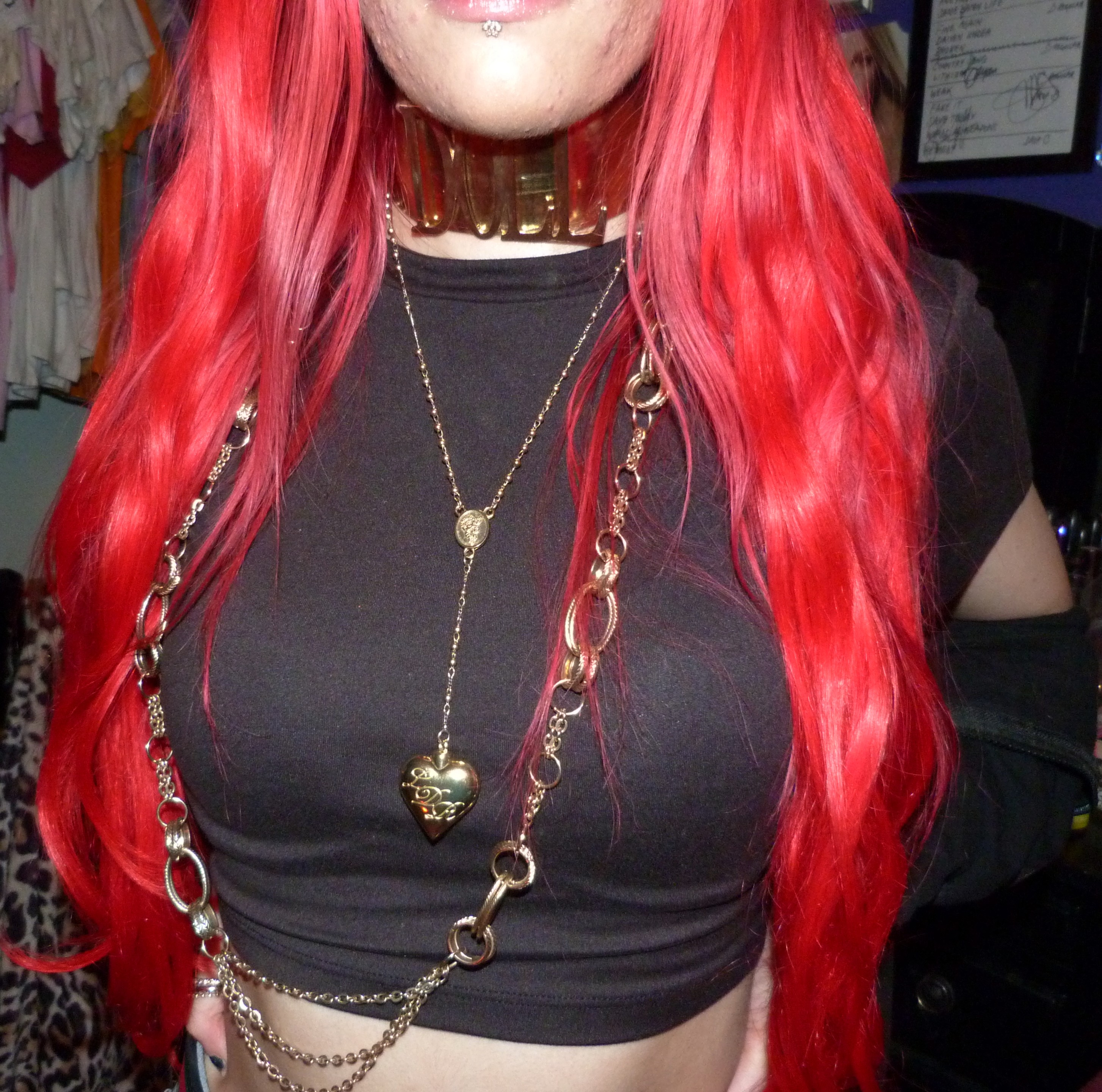 Thanks so much for checking me out! Today I’m doing a post for this really cool Lana Del Rey necklace that I got in 2015 at her Endless Summer Tour. It’s really cool and I love it, it’s a really perfect gold color and it’s a rosary style heart & everything. So basically, it says LDR on the front which is her initials, and then on the back is a really pretty embossed snake that matches the part down the chain, which is flat and also has a snake on it. The chain is a rosary style chain and connects to the snake part in the middle and then has the heart dangle from it (it’s a Y pattern of course). You can tell from the pictures, lol, but it’s a really awesome necklace! And the top of the heart unscrews and you can fill the heart with cocaine which is why it’s called a stash necklace! It also comes with a mini spoon attached to the chain, on the inside so that you can take bumps of your cocaine, too. I think that’s a pretty awesome idea, I love it. I’m glad I finally got around to doing a photoshoot for this necklace too, it’s awesome.