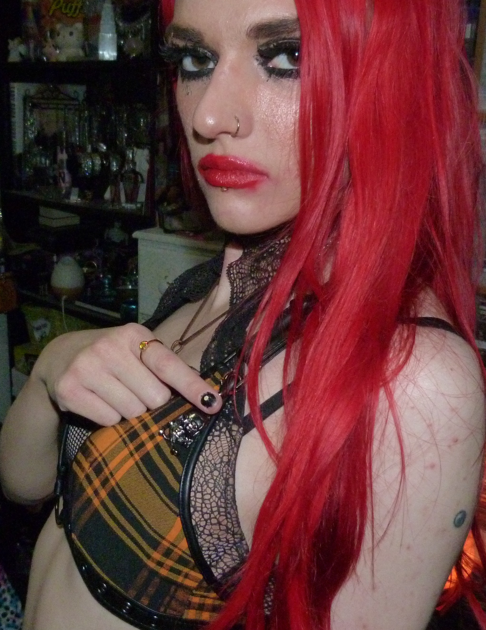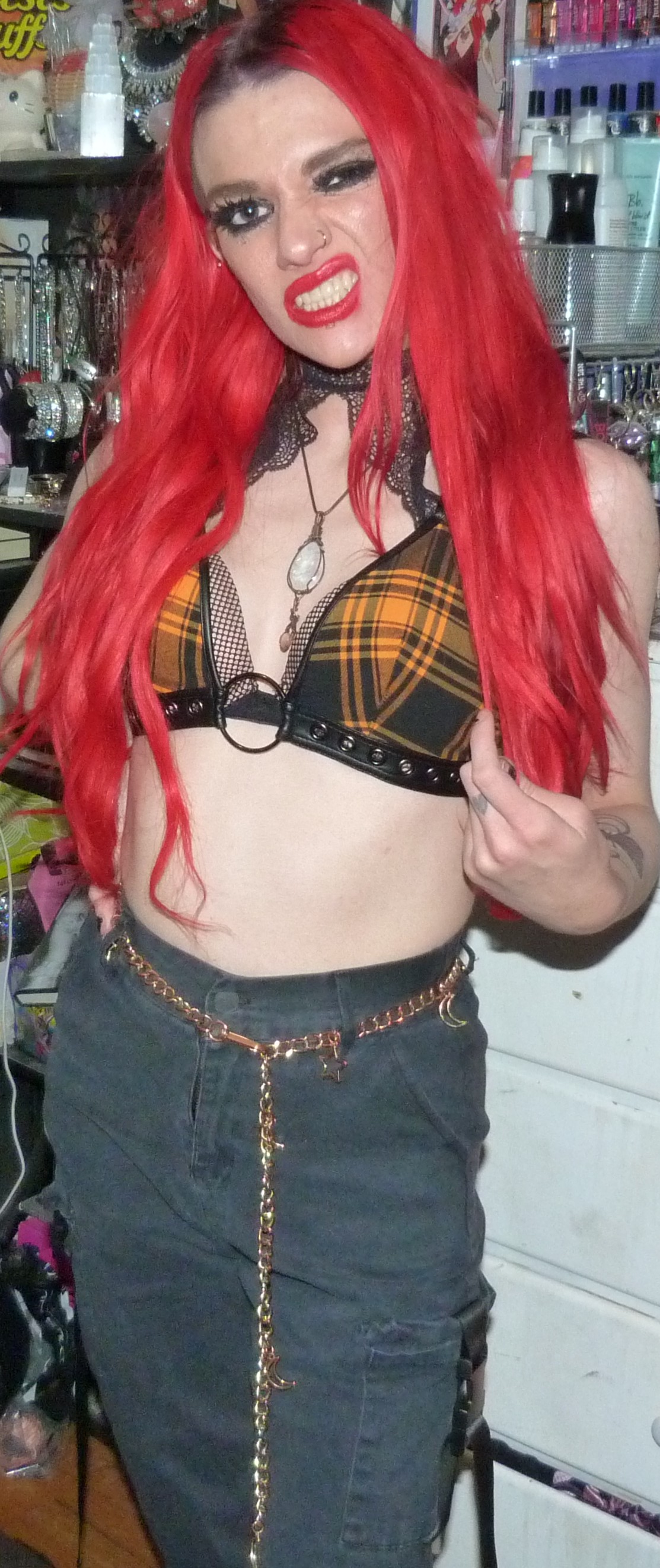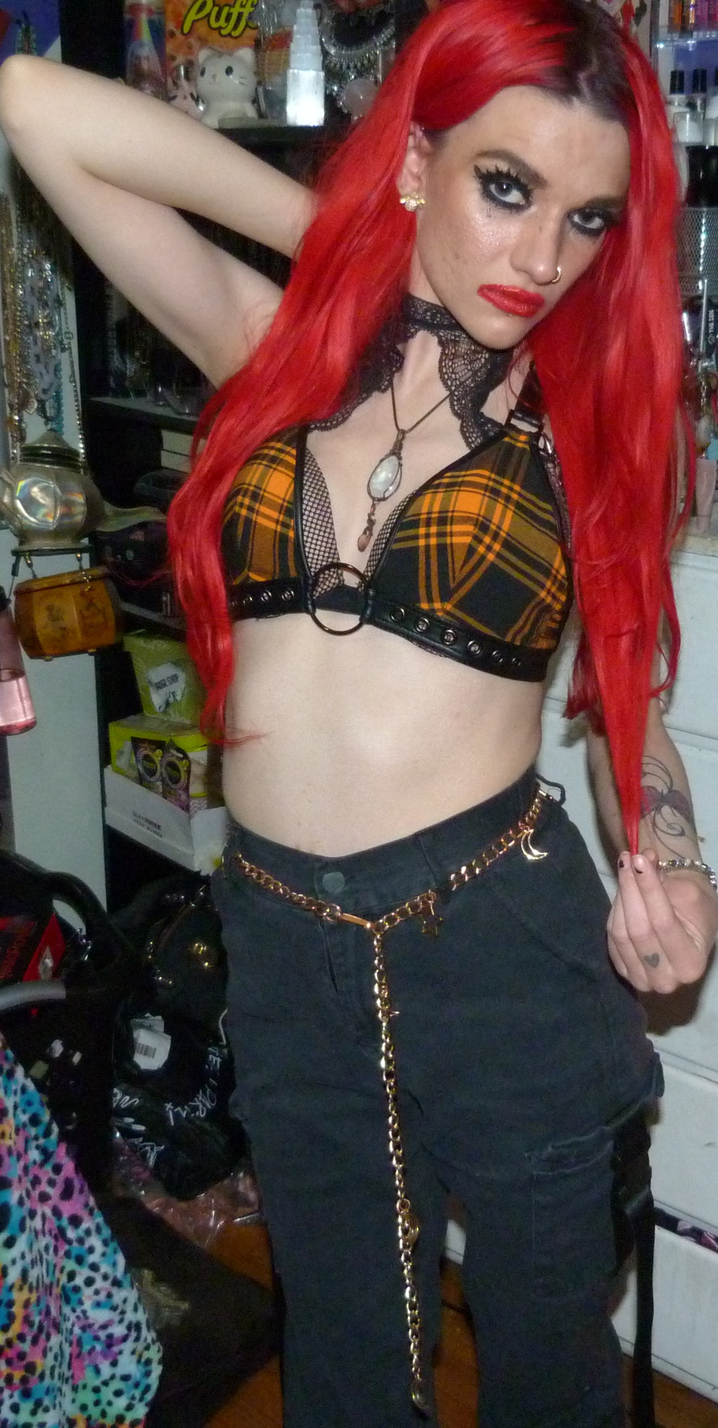 HATE ME HALTER TOP from Avril Lavigne x Killstar‘s second collection that I got in the fall! This is a really cute bralette that I love with orange plaid & a skull charm on it, it’s a super cute bra top! You can check out the main blog post for it on my main blog called HOPPY EASTER: KILLSTAR #5 on that blog of mine, Shop For Days too! I have x2 things from her second drop with Killstar, the orange plaid things, also x4 things from her first drop, the pink sheer stuff & then finally x2 things from her third & final red & black collection with them. You can check all of that out on this blog!