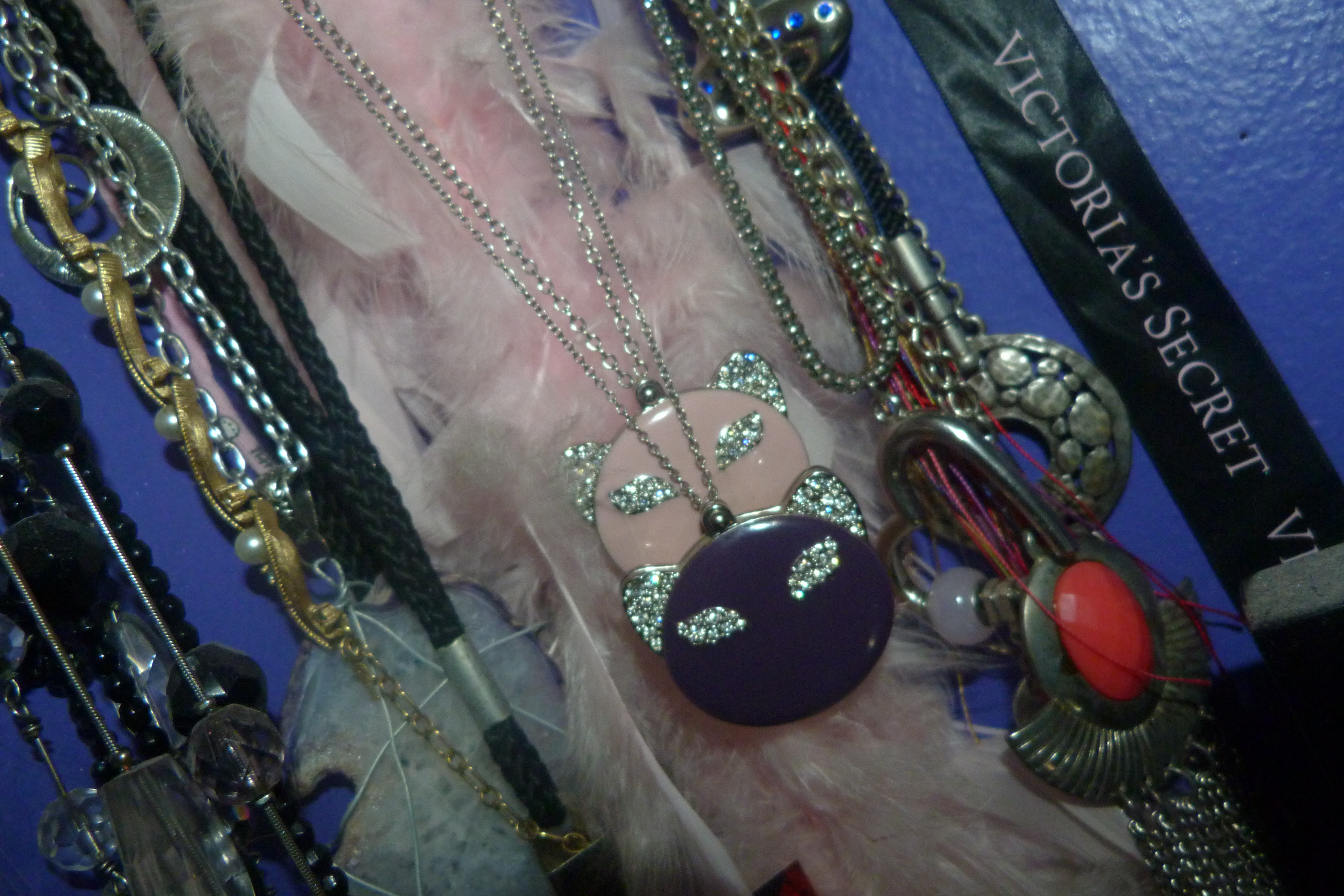 BOTH A KATY PERRY PURR NECKLACE AND A MEOW PERFUME LOCKET NECKLACE! THESE ARE BOTH PRETTY COOL, I WORE THEM IN A COUPLE PHOTOSHOOTS.
