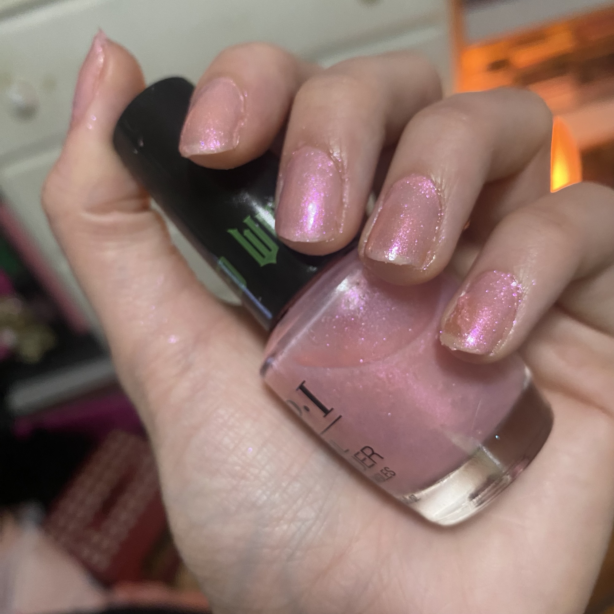 Here’s this awesome sheer pink Ga-Linda polish from that recent Wicked movie Ariana Grande was in this past year! I saw it, it is an awesome movie. So I got one of the OPI x Wicked Collection 2025 nail polishes because of Ariana, and it’s a pretty polish! I only got the one though. I loved Ariana Grande in that movie, I might buy more merch from it maybe. Check out @merchstyle too.